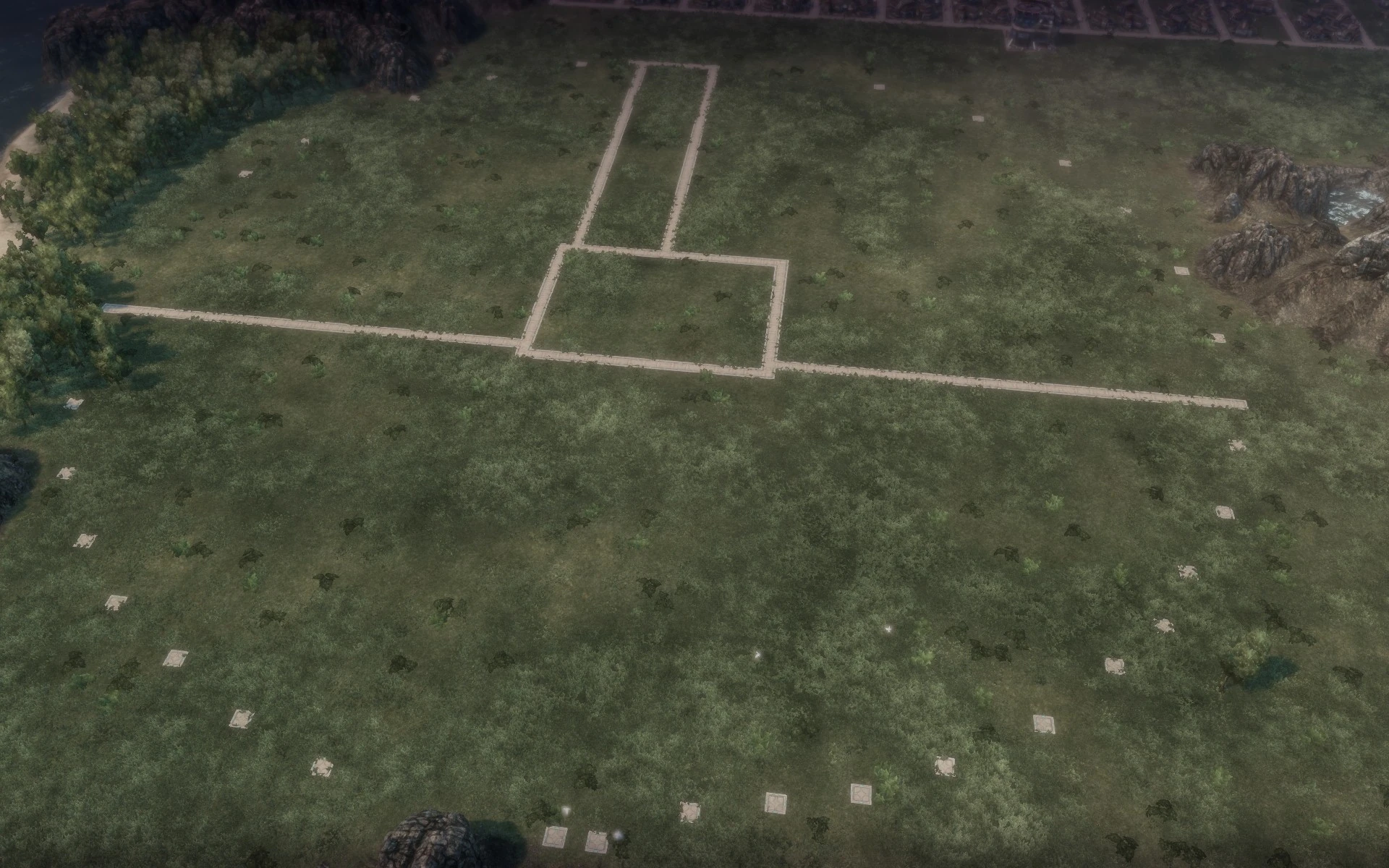 While your monument builds, as long as your logistics chain can support your food needs, you can start laying out your monument city. In this example I am using the Universal Cornrow design uploaded by Messej